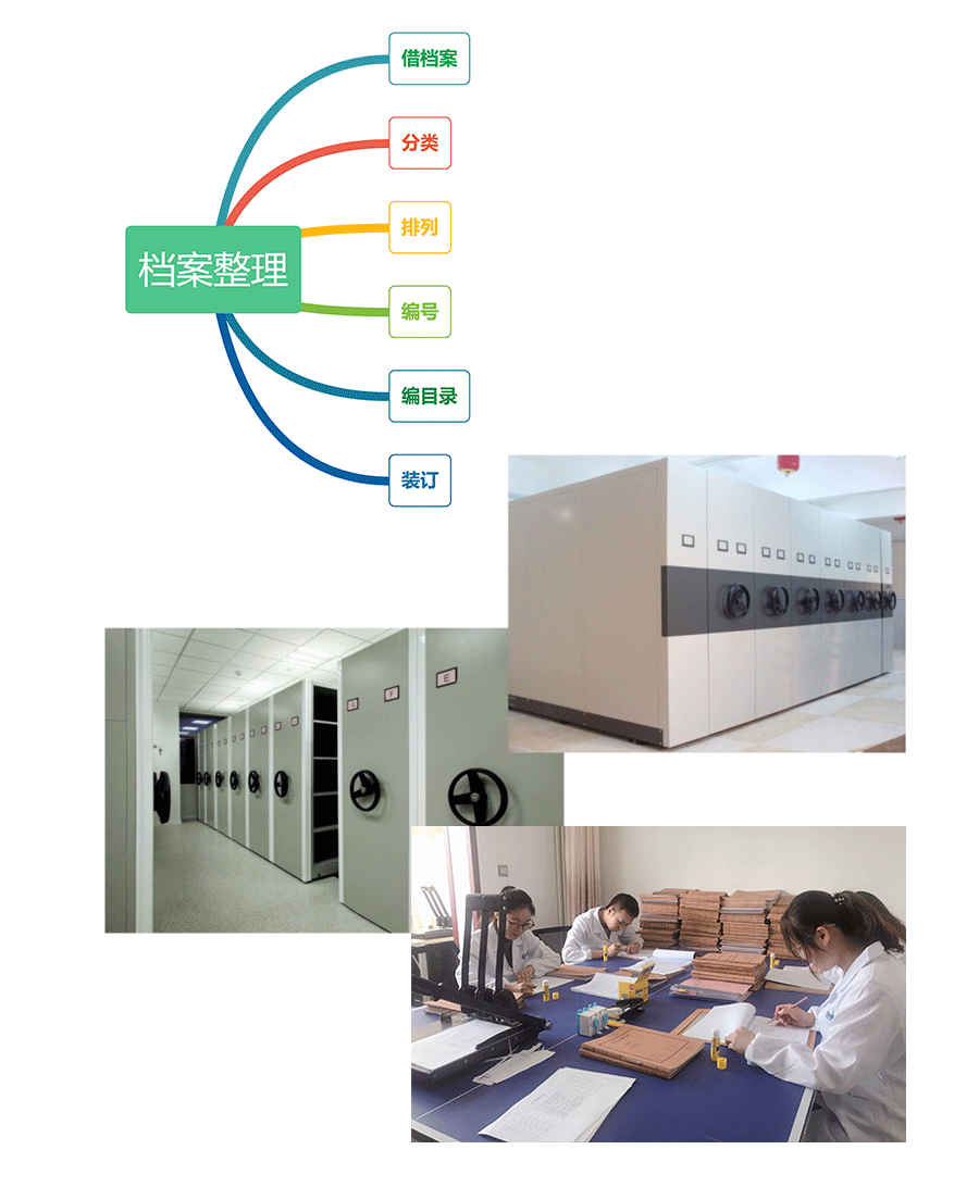 檔案整理是指將處于零亂的和需要進一步條理化的檔案,進行基本的分類、組合、排列、編號、編制目錄、建立全宗等, 組成有序體系的過程。